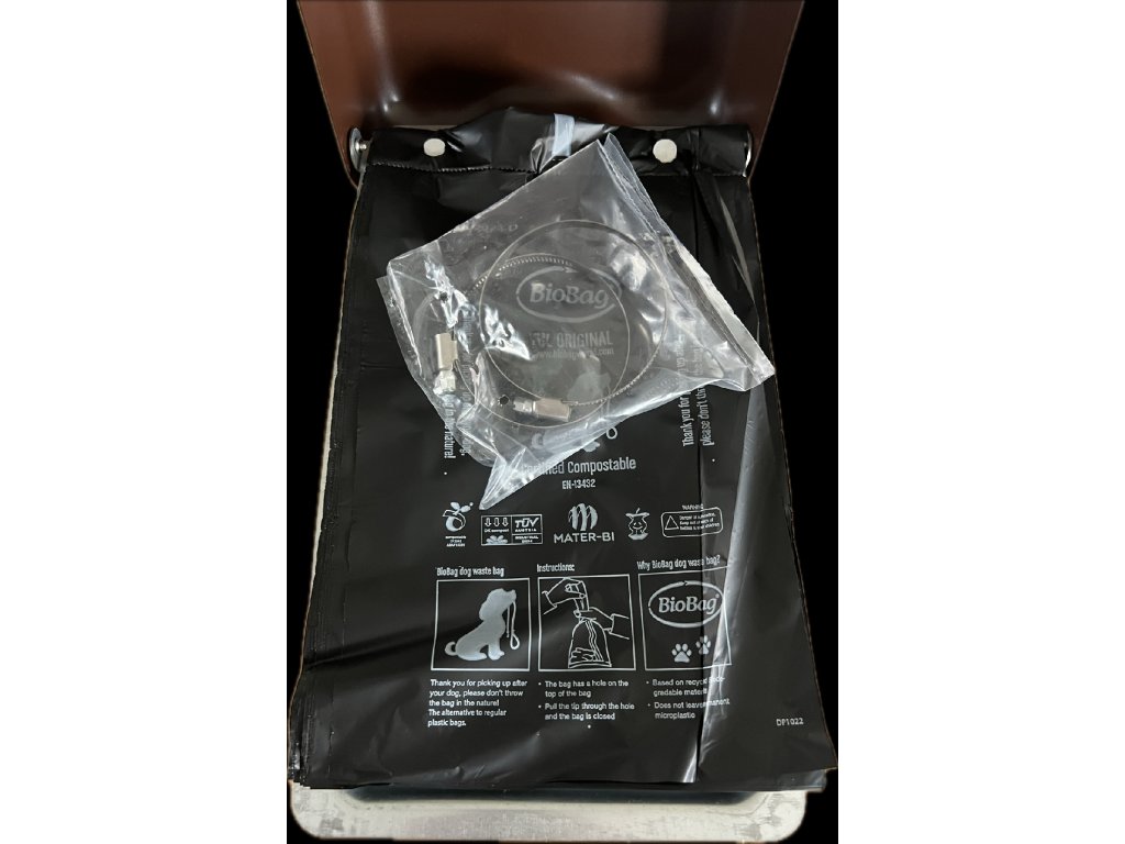 Kompostovatelné sáčky na psí exkrementy BioBag jsou 100% rozložitelné. Jsou vyrobeny z patentovaného materiálu Mater-Bi, který je složen ze 70 % z kukuřičného škrobu a 30 % z upravených polymerů, které jsou rozložitelné bakteriemi na CO2, biomasu a vodu. Při výrobě se využívá výhradně energie z obnovitelných zdrojů - vlastní solární a bioplynové elektrárny.